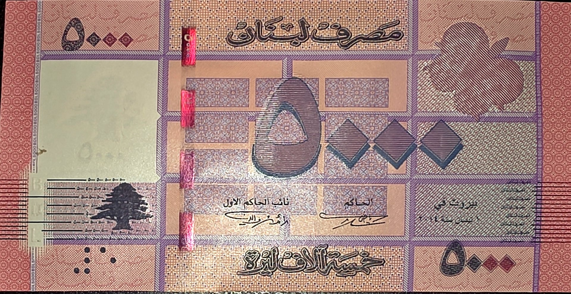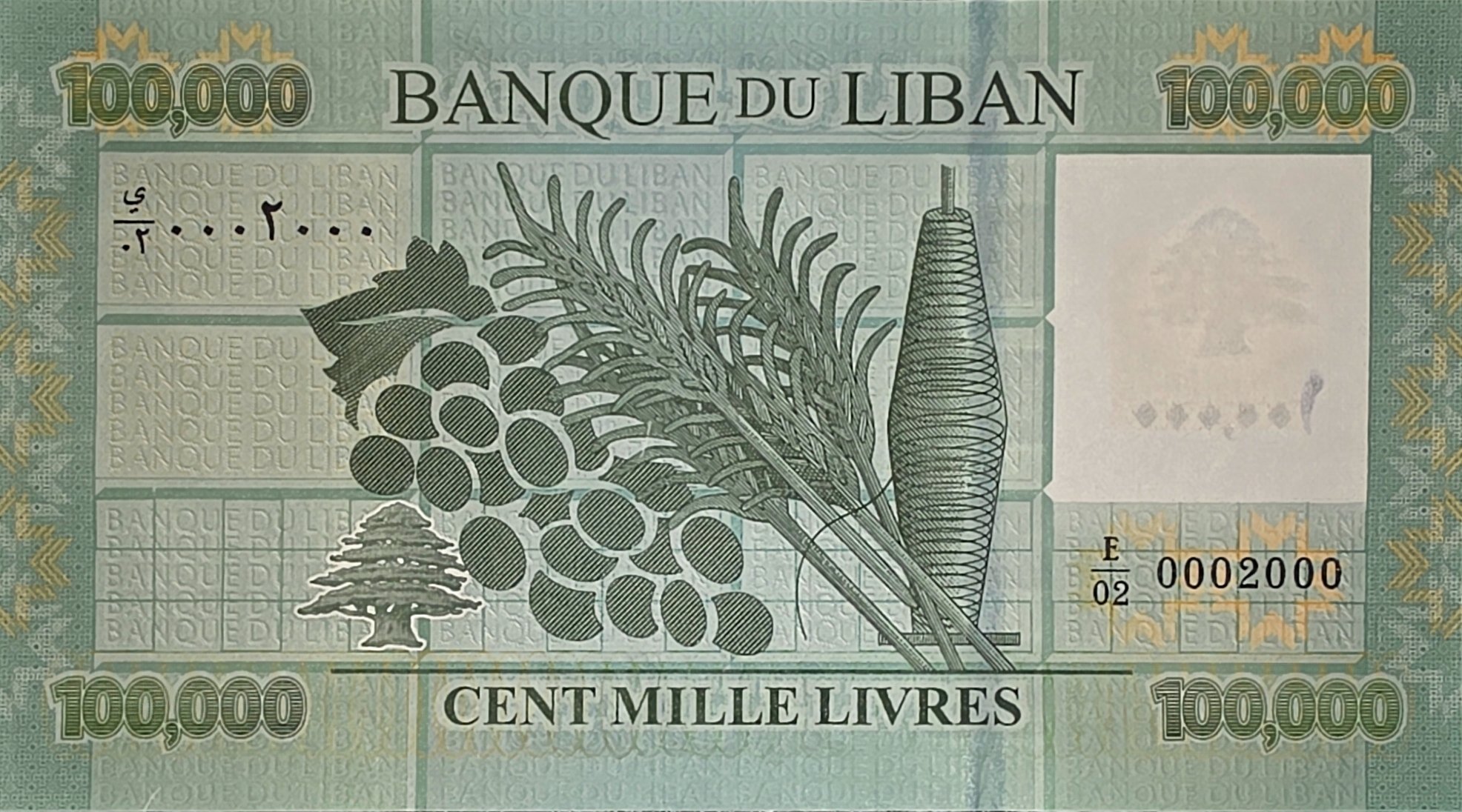 Lebanon banknote 100000 livre 2011 unc special radar serial number