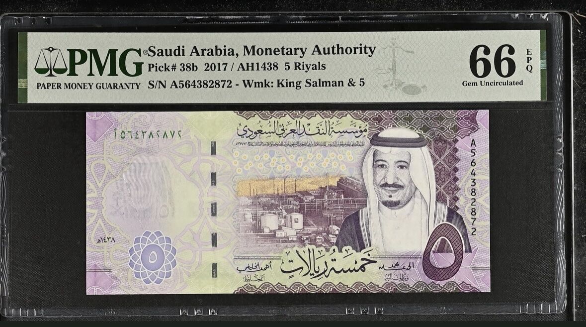 Saudi Arabia banknote 2017 5 riyals graded 66 pmg